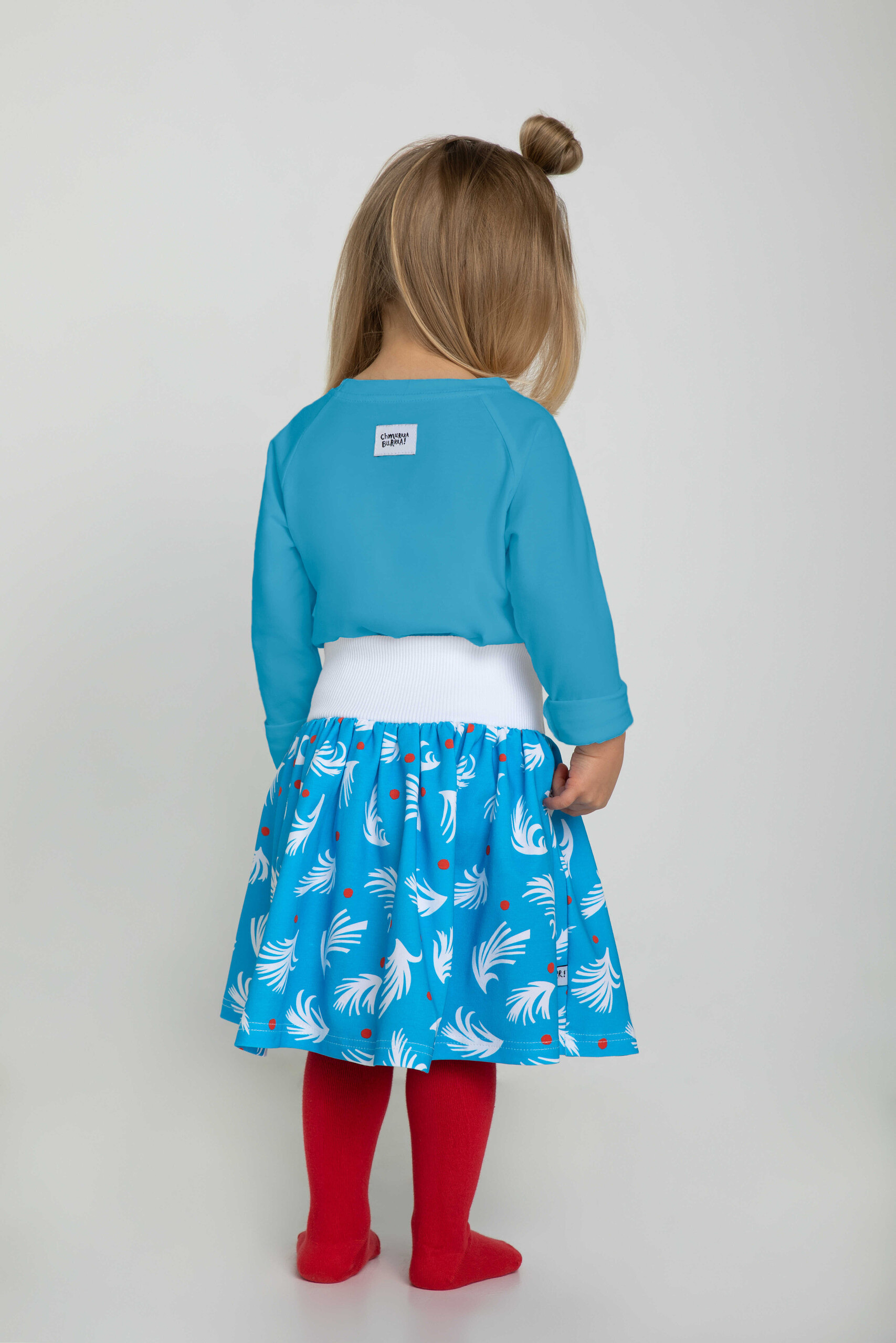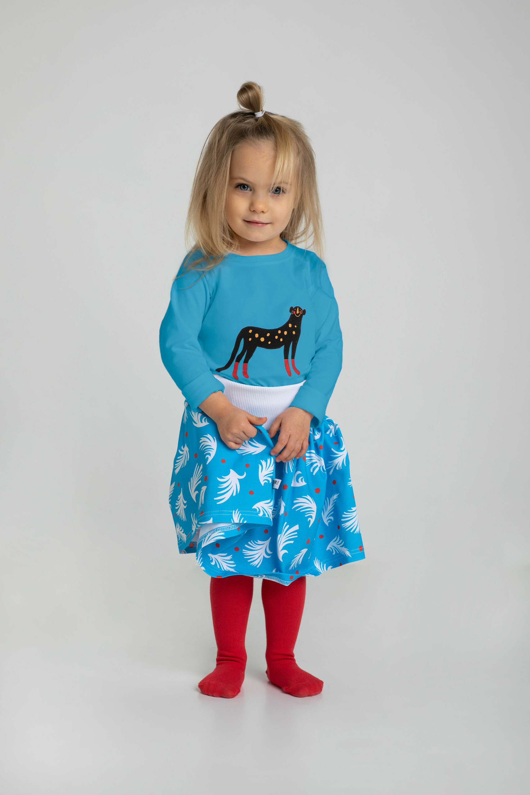 Główna bohaterka kolekcji Kochamy Folk Pantera pojawiła się również jako nadruk na niebieskiej bluzce z długim rękawem. Uszyta z miłej dla skóry i miękkiej w dotyku bawełny koszulka ma szansę stać się nieodłącznym towarzyszem dziecięcych zabaw. Z kolei nadruk został wykonany z bezpiecznych dla środowiska farb wodnych.