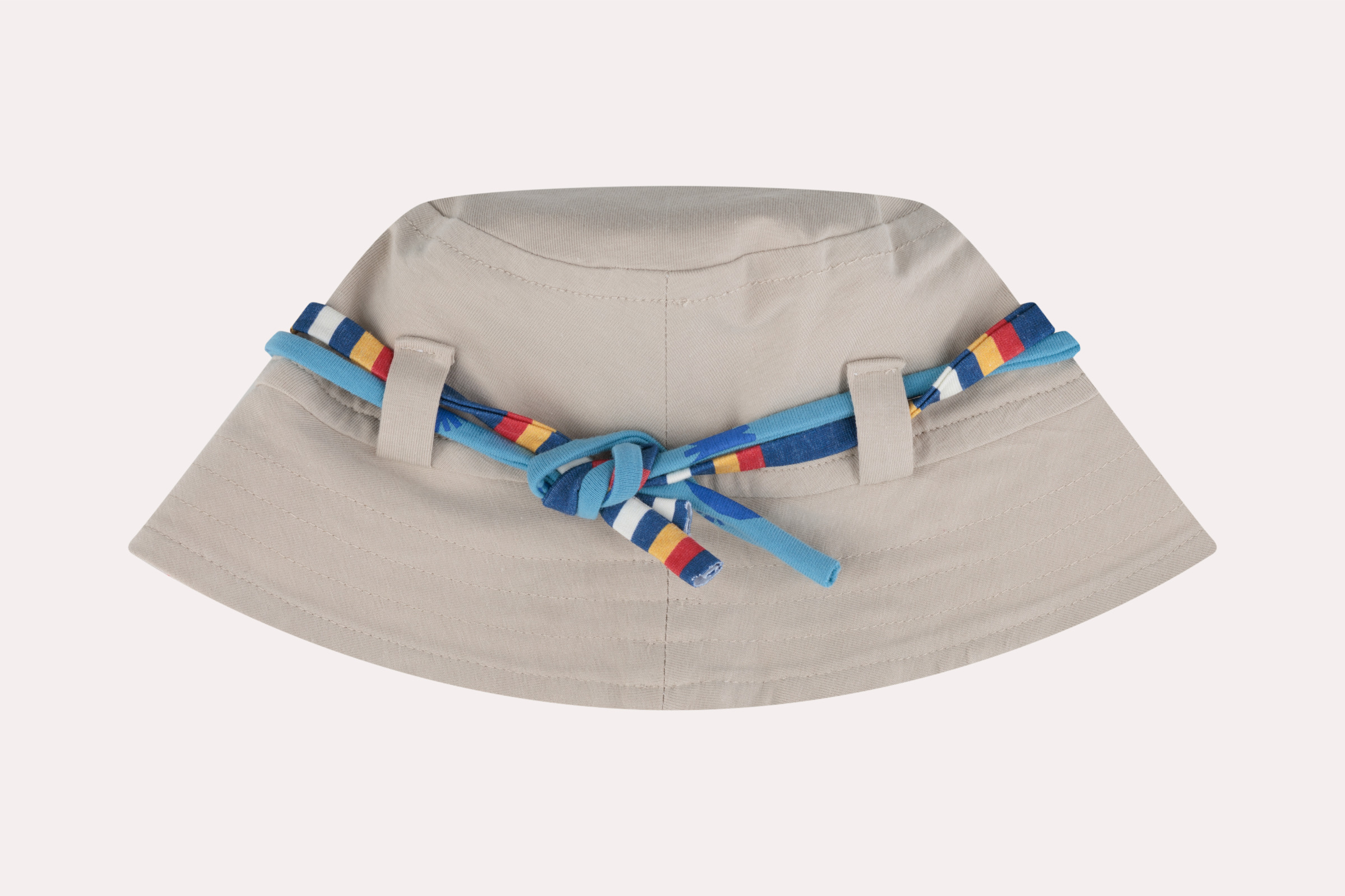 Kolorowy kapelusik ochroni przed słońcem i pięknie uzupełni każdy letni zestaw – nie tylko plażowy! Wykonany z połączenia bawełny i lnu świetnie odprowadza wilgoć na zewnątrz. Ten projekt to kwintesencja Chmurrry – liczy się dla nas design, ale na pierwszym miejscu zawsze stawiamy komfort i wygodę dziecka.