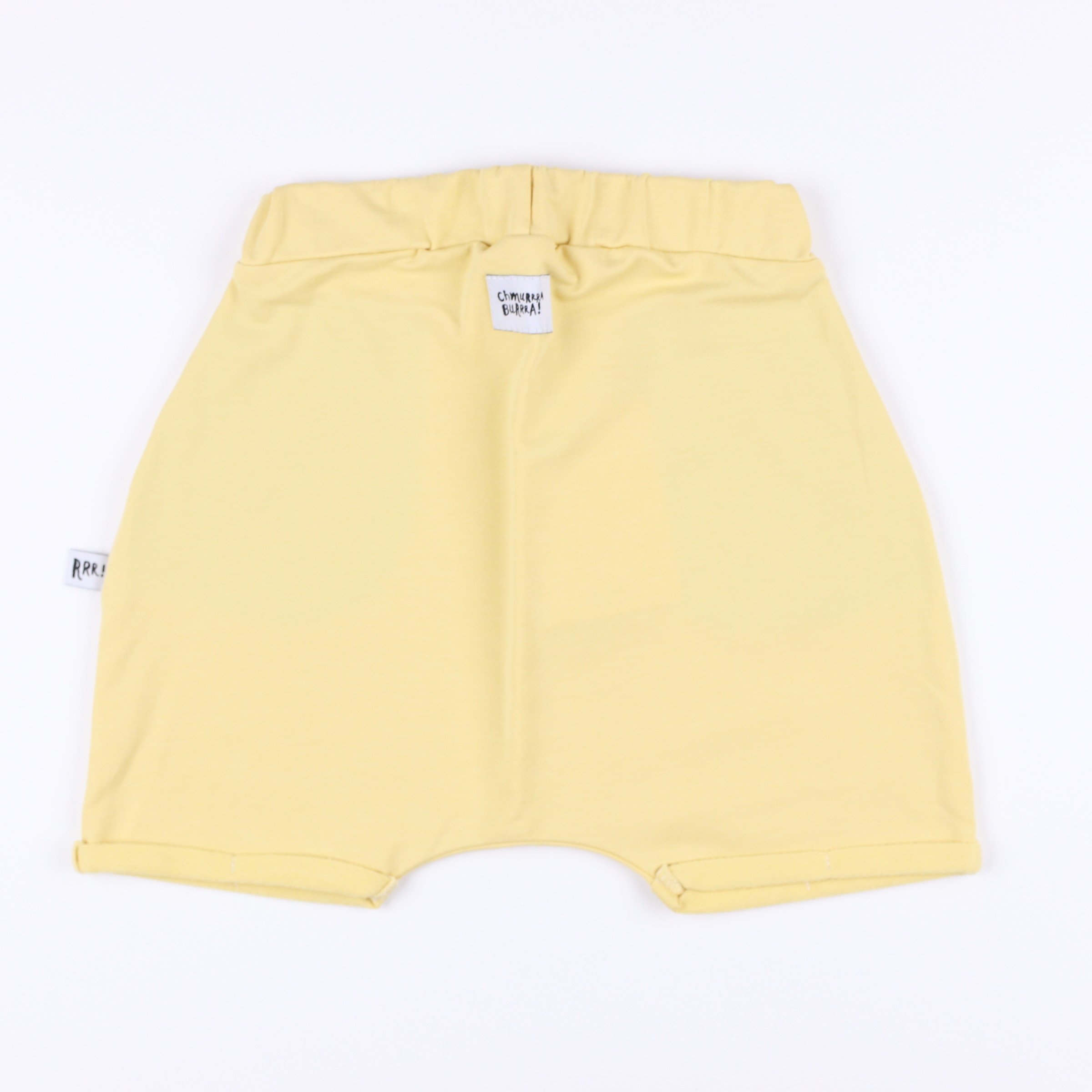 Ulubione letnie spodenki muszą spełniać kryteria wygody i swobody. Nasze są lekkie, miękkie w dotyku i w pięknym jasnożółtym odcieniu – nic dziwnego, że dzieciaki je uwielbiają. Całości dopełniają folkowe paski na kieszeniach.