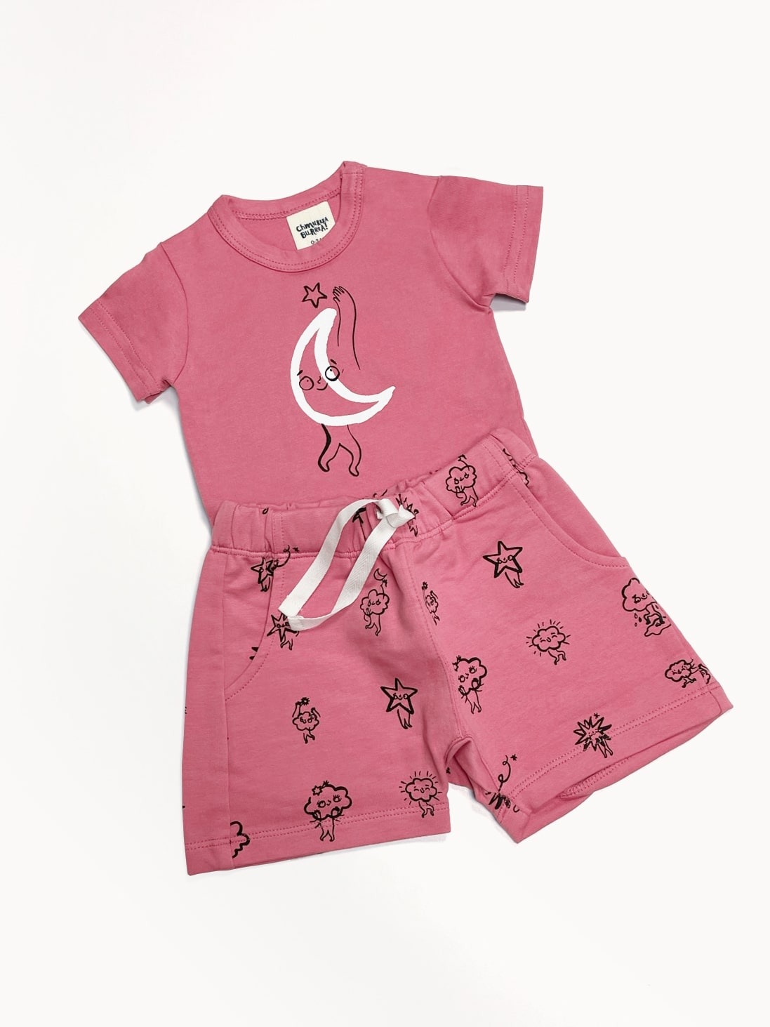 Stwórz swój własny zestaw w promocyjnej cenie! Wybierz body z krótkim rękawem i spodenki z kolekcji CHMURA w dowolnym kolorze i wzorze. W skład zestawu wchodzą body z krótkim rękawem do wyboru w kolorze białym, różowym lub niebieskim z motywem chmury lub księżyca + spodenki różowe z motywem chmury lub kotów albo spodenki niebieskie z motywem kotów (tylko w rozmiarze 62-68)
