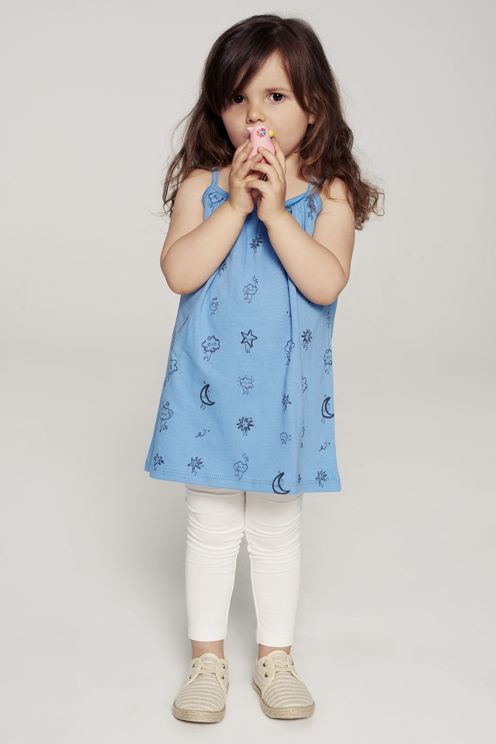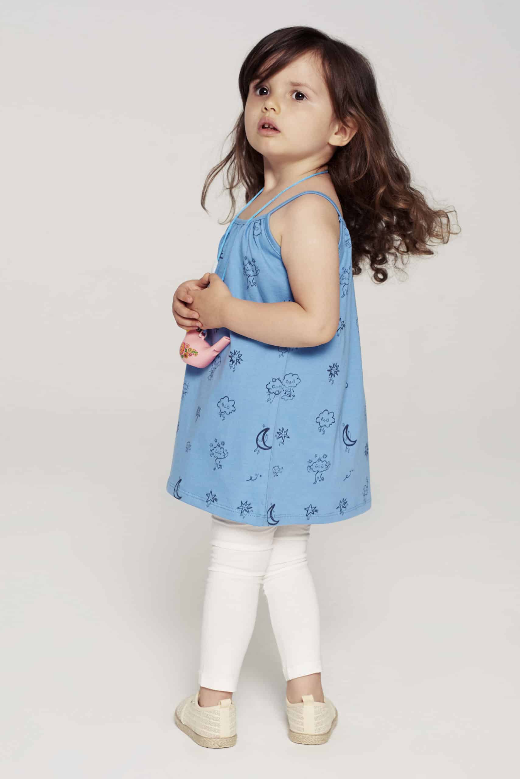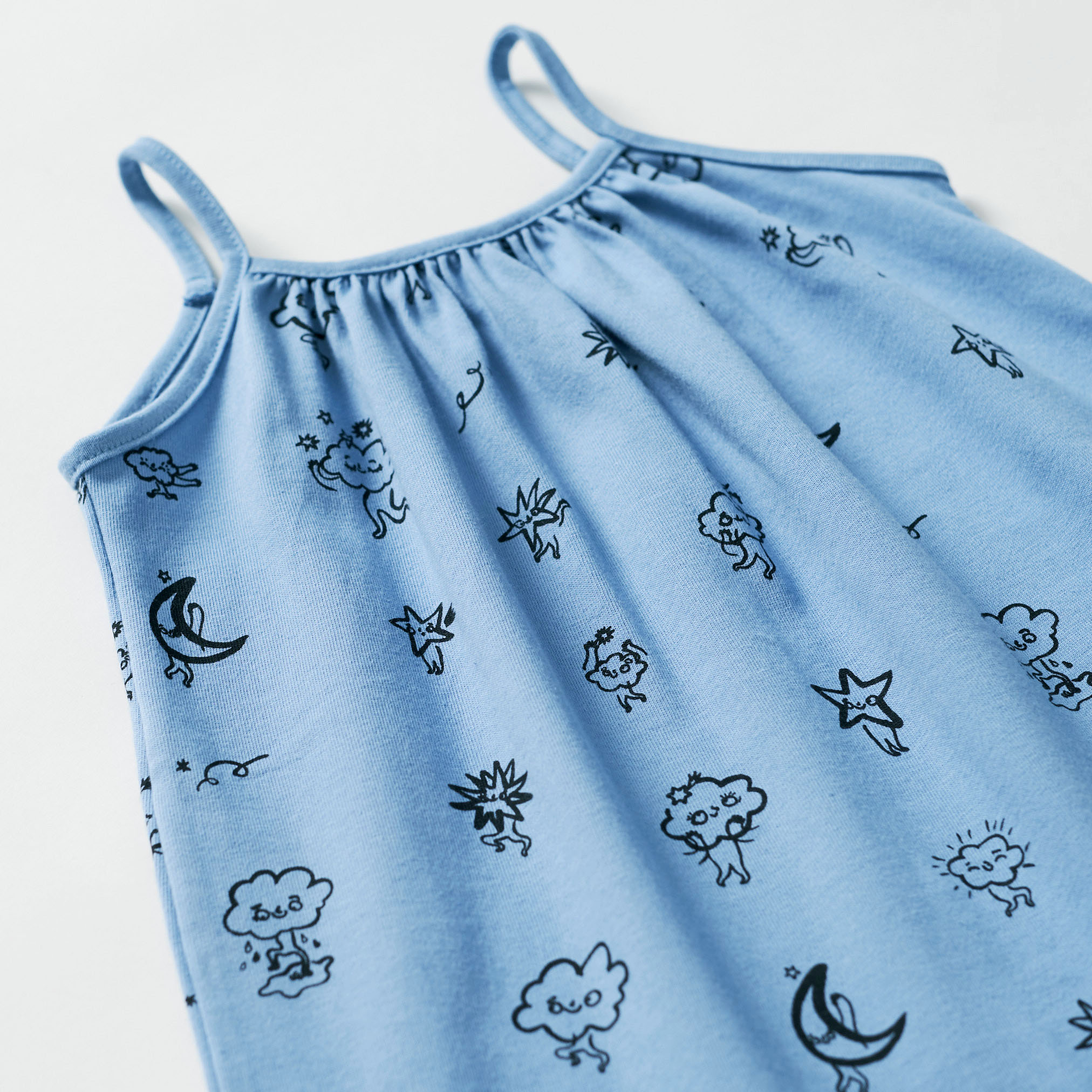 Letnia niebieska sukienka w chmurki idealna na upalne dni.