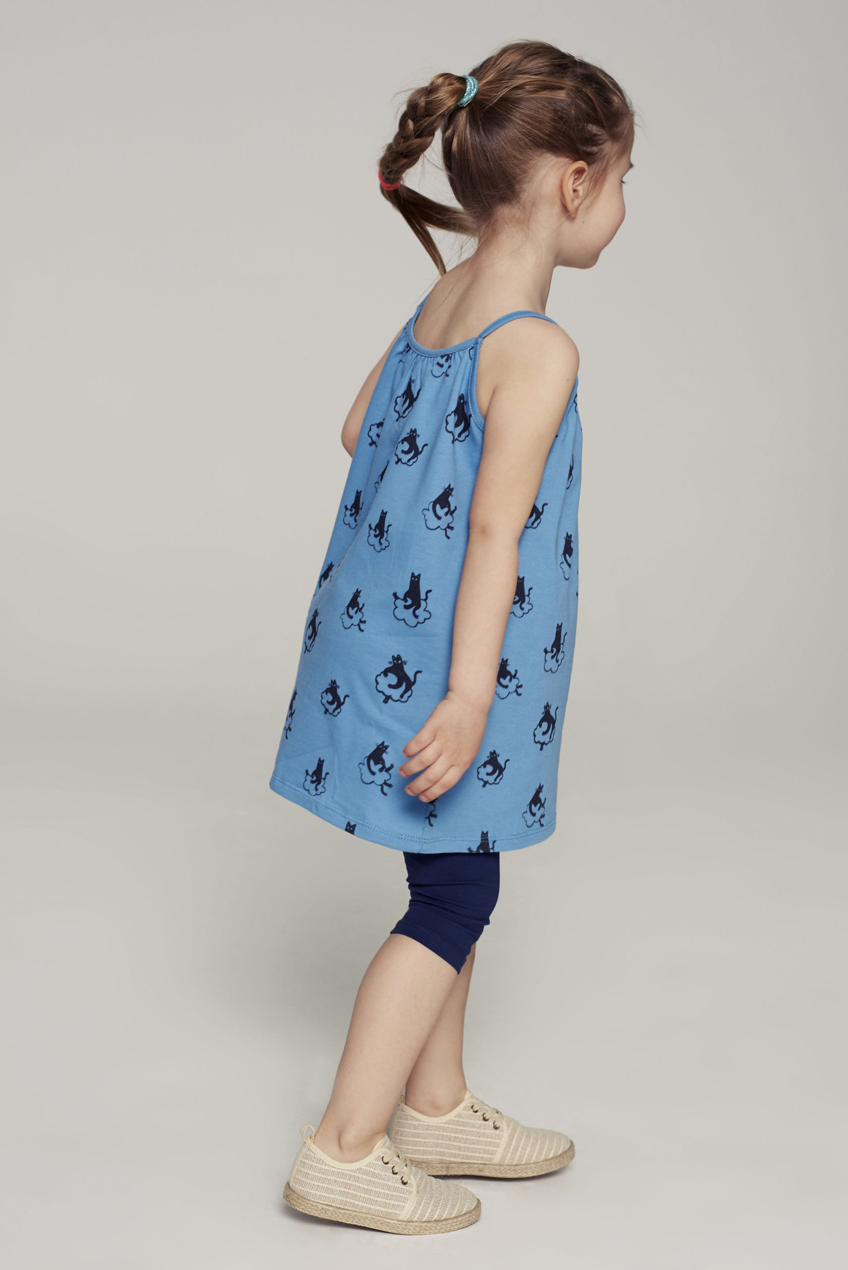 Sukienka dla dziecka na ramiaczkach niebieska Koty przod scaled 1