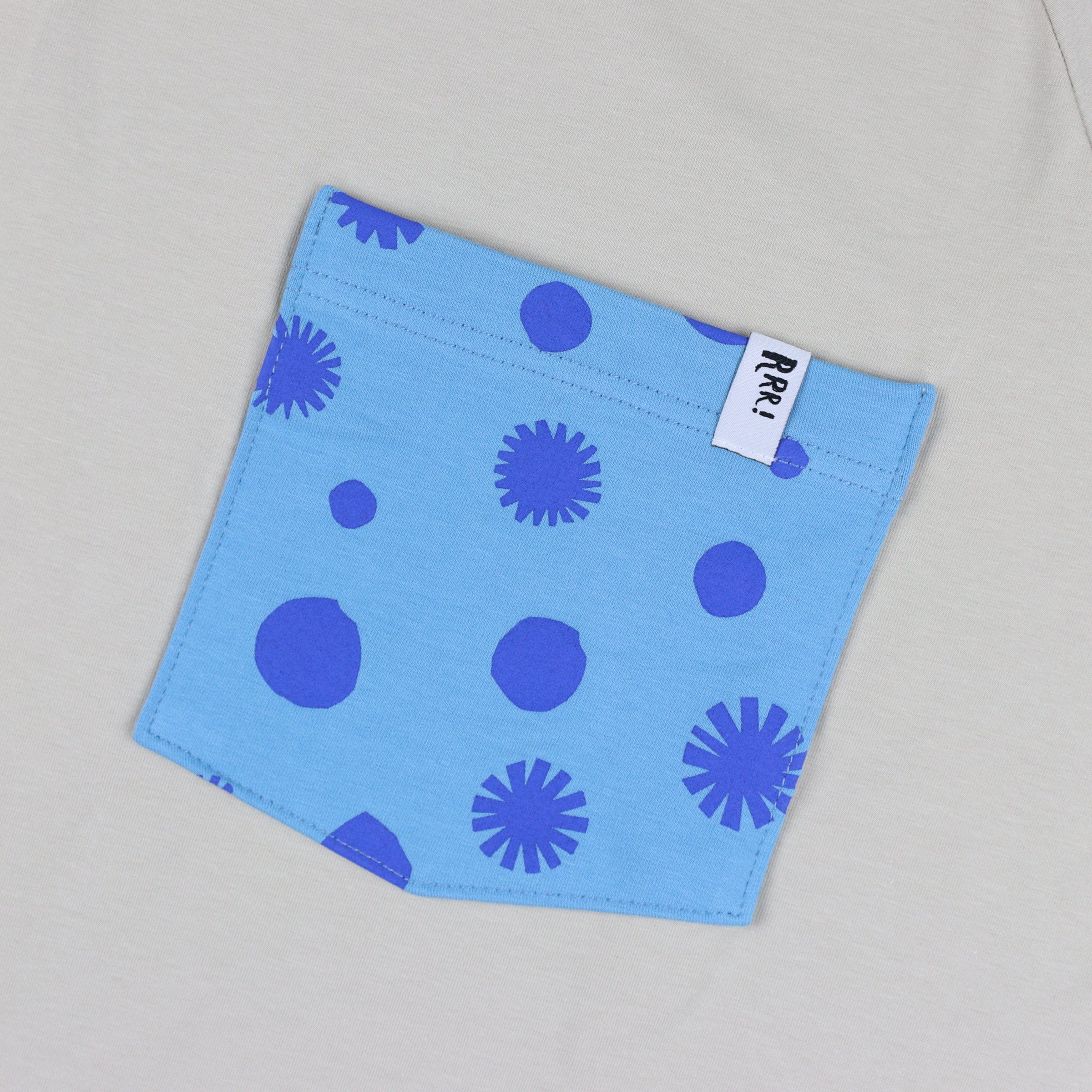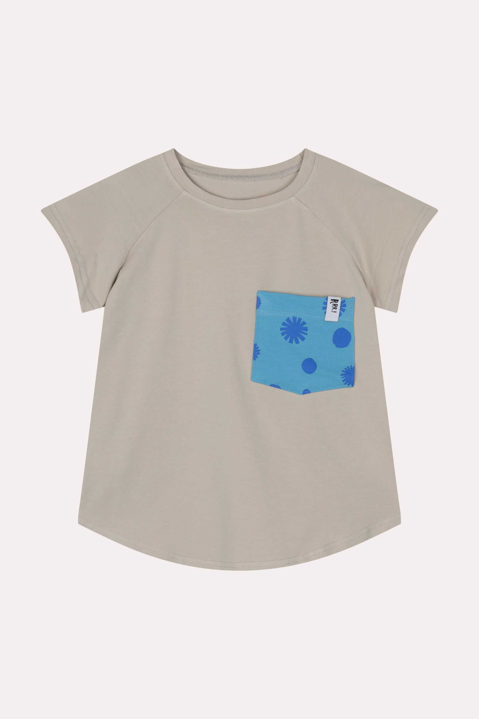 Jak budować zamki w piasku, to tylko w beżowym t-shircie o luźnym kroju. Żeby nie było jednak nadto poprawnie koszulka uzupełniona została o kontrastową kieszonkę z motywem niebieskich kropek. Dostępna w wersji dla dziecka i dorosłego.