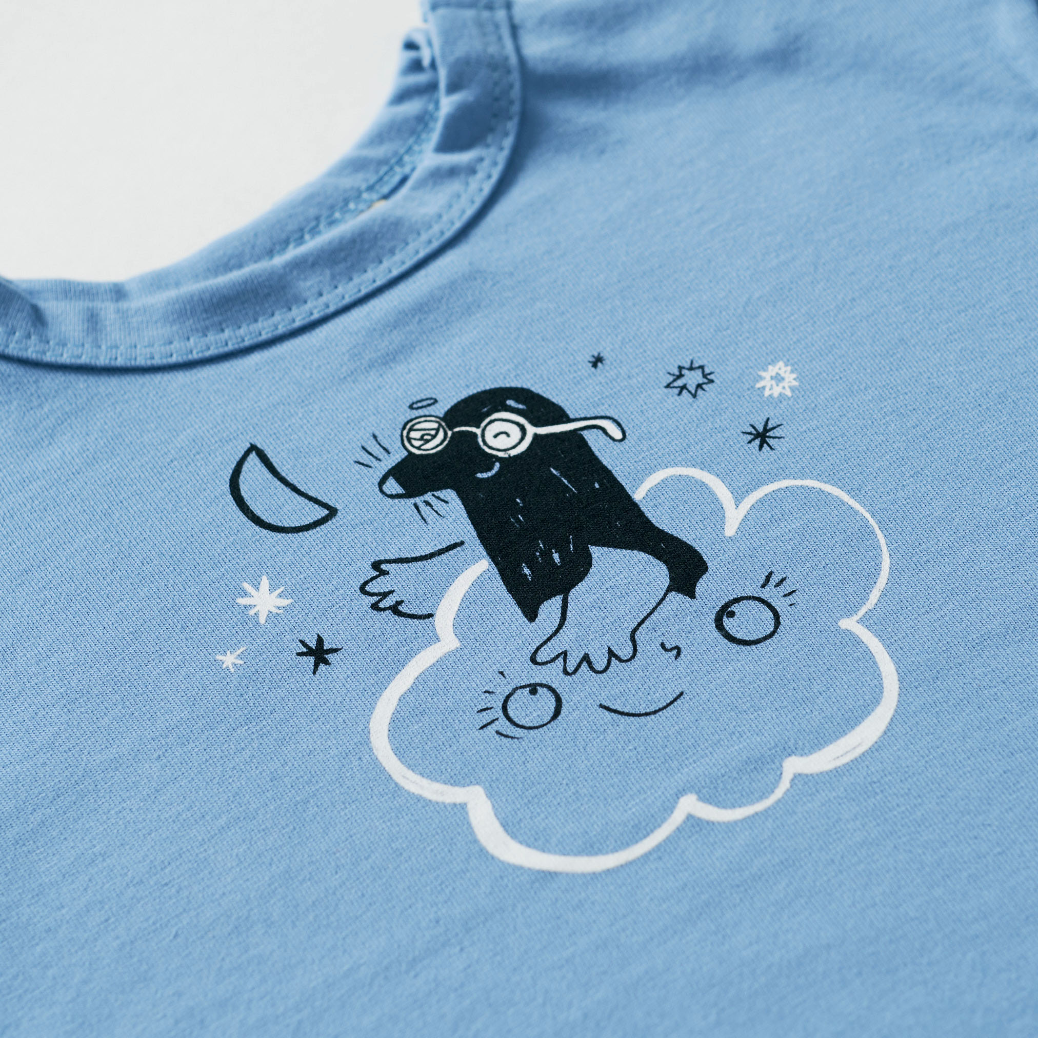 Zabawna rymowanka i sympatyczny kret na t-shircie? Dlaczego nie! Niebieska koszulka z krótkim rękawem w 100% z certyfikowanej bawełny.