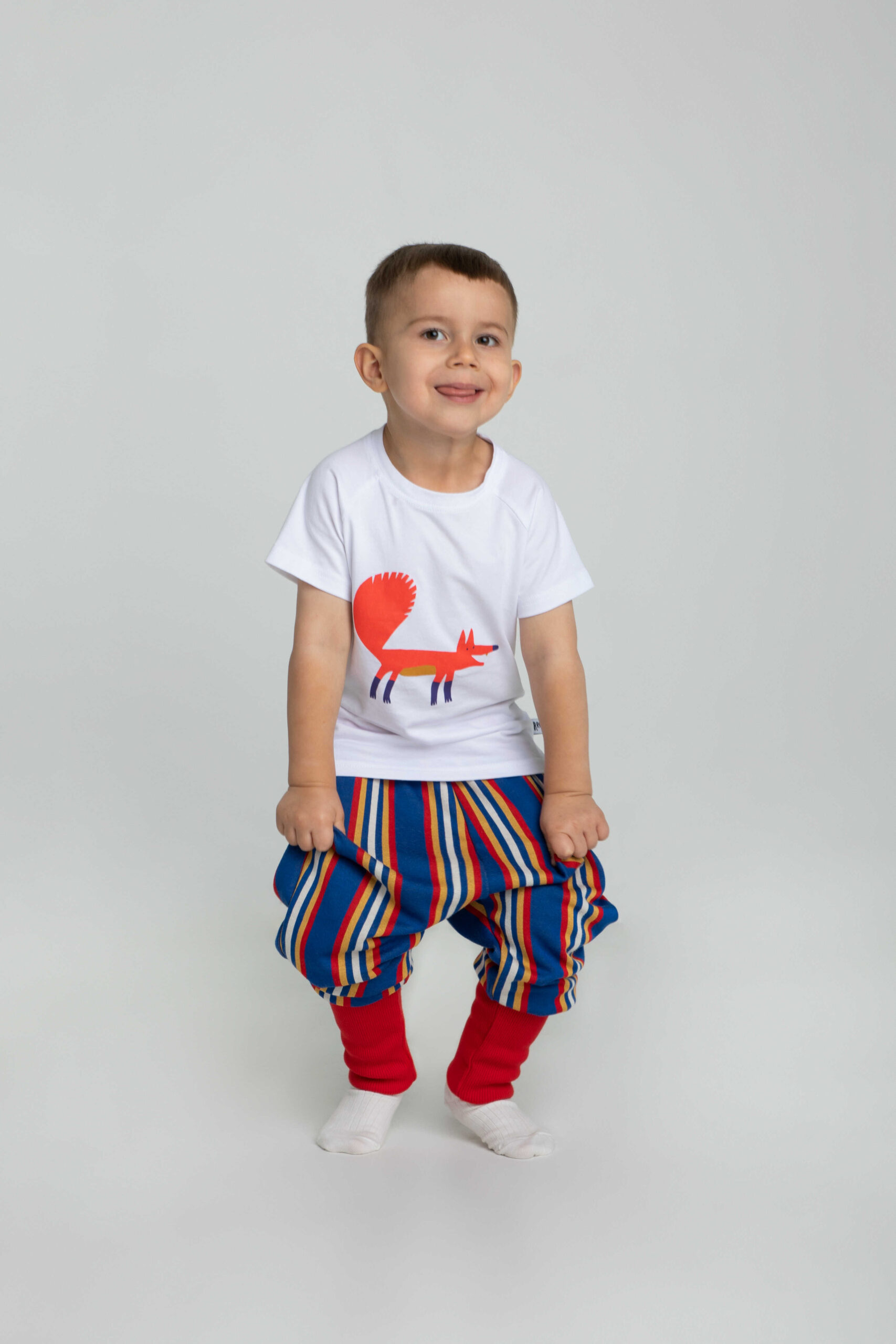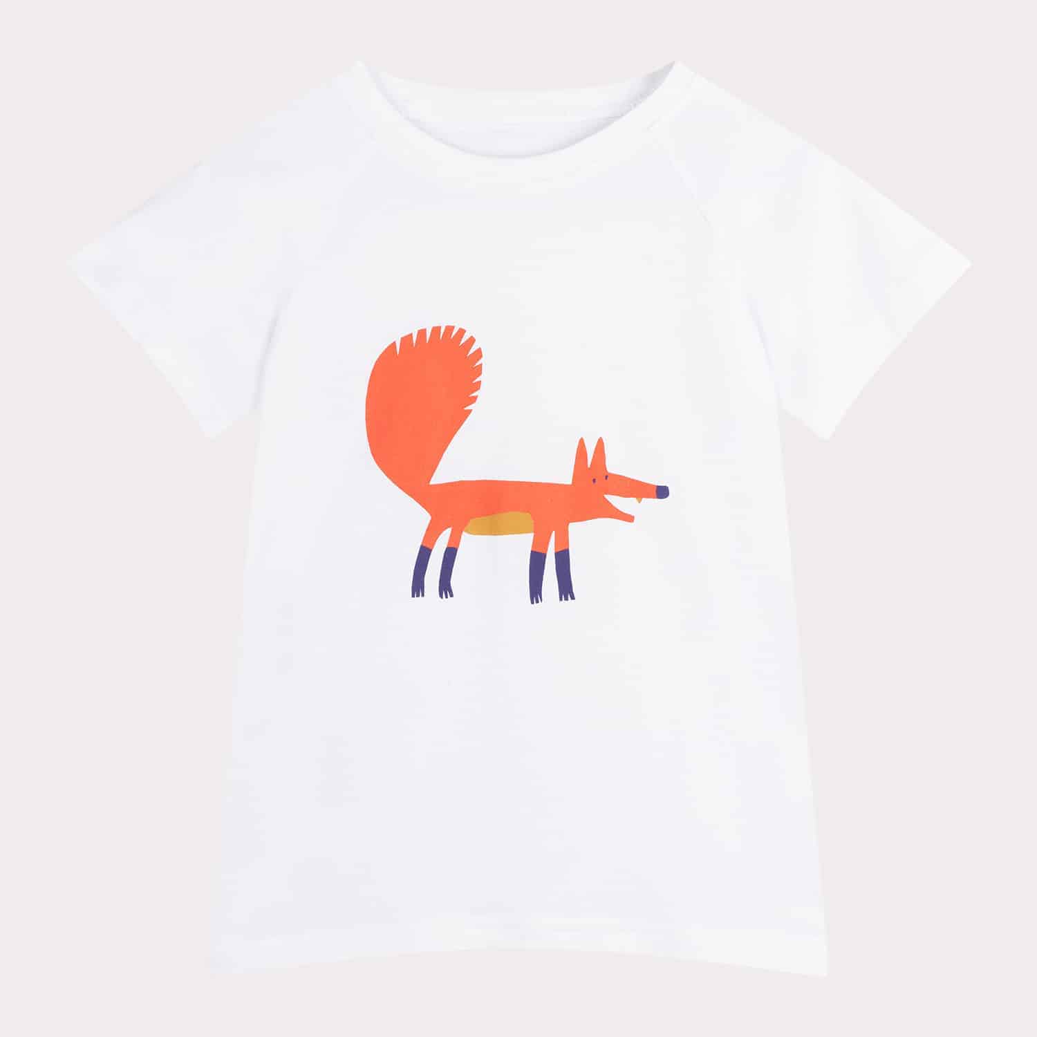 Puszysta kita i ruda sierść – jaki jest lis, każdy widzi. Ten nasz ozdobił białą koszulkę z krótkim rękawem i trzeba przyznać, że wpisuje się w niej równie dobrze jak w leśny krajobraz. Kolorowy nadruk wykonany został z bezpiecznych dla dzieci i środowiska farb wodnych, a samą koszulkę uszyliśmy z miękkiej i miłej w dotyku bawełny.